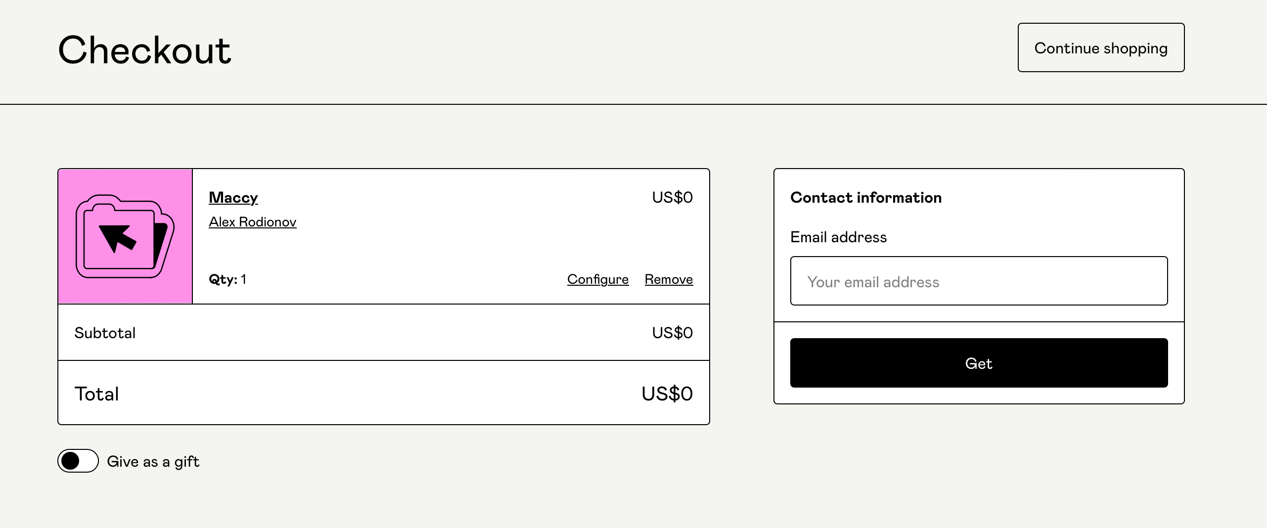 - 在 Checkout 頁面中填上你的電子郵件,並按下 Get